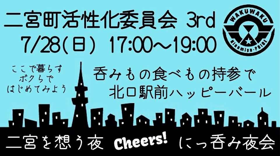 第3回は7/28(日)17:00〜19:00に開催。会場はわくわく団の本拠地でもある北口駅前ハッピーバール。呑みもの食べもの持参でお気軽にお越しください。