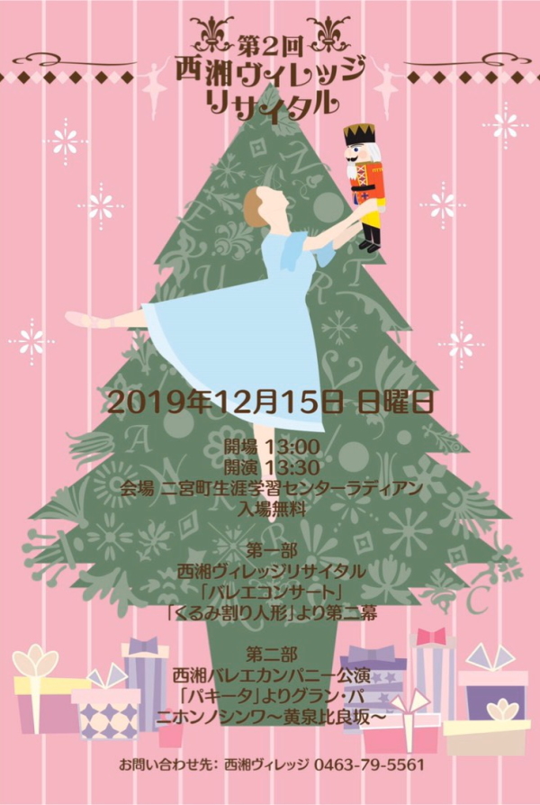 リサイタル主催者の西湘ヴィレッジは、二宮駅南口栄通り商店街にあるバレエ教室です。バレエだけでなく、ヨガ・ボディメイク・ストレッチ・英会話など多様な文化とふれあえる場所です。プリンスジュンは、ヨガとクラシックバレエを週に4~5回通っています。